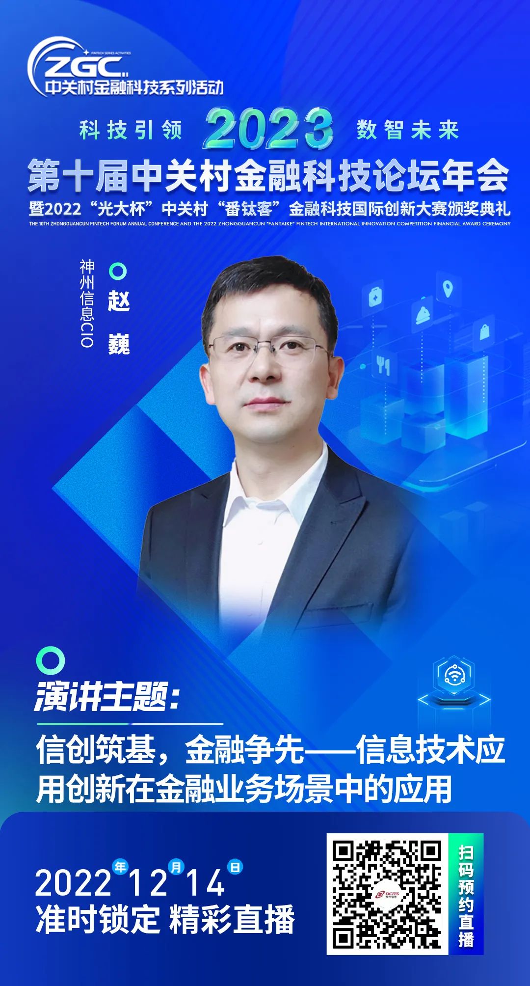 14日上午的“核心技术崛起—自主可控专题论坛”中,神州信息CIO赵巍作为专题论坛主席,将做《信创筑基,金融争先——信息技术应用创新在金融业务场景中的应用》主题演讲。